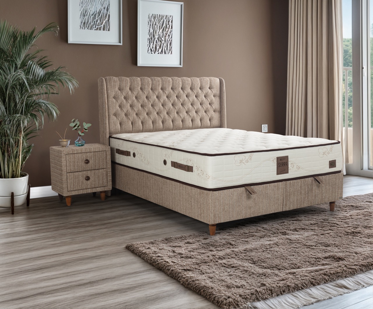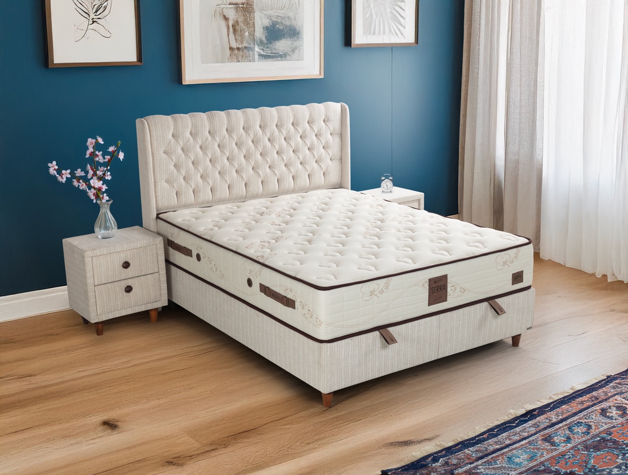 This base will bring elegance to your house with its quilted design, sturdy construction, and practical design. It will ipprove the visual appeal of your home with its ample storage copacity and base- headboard harmony